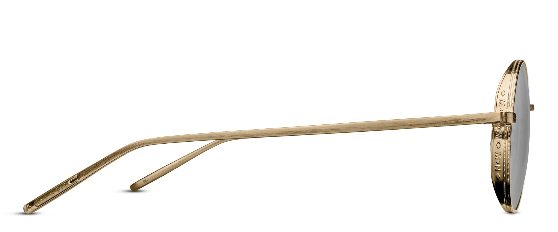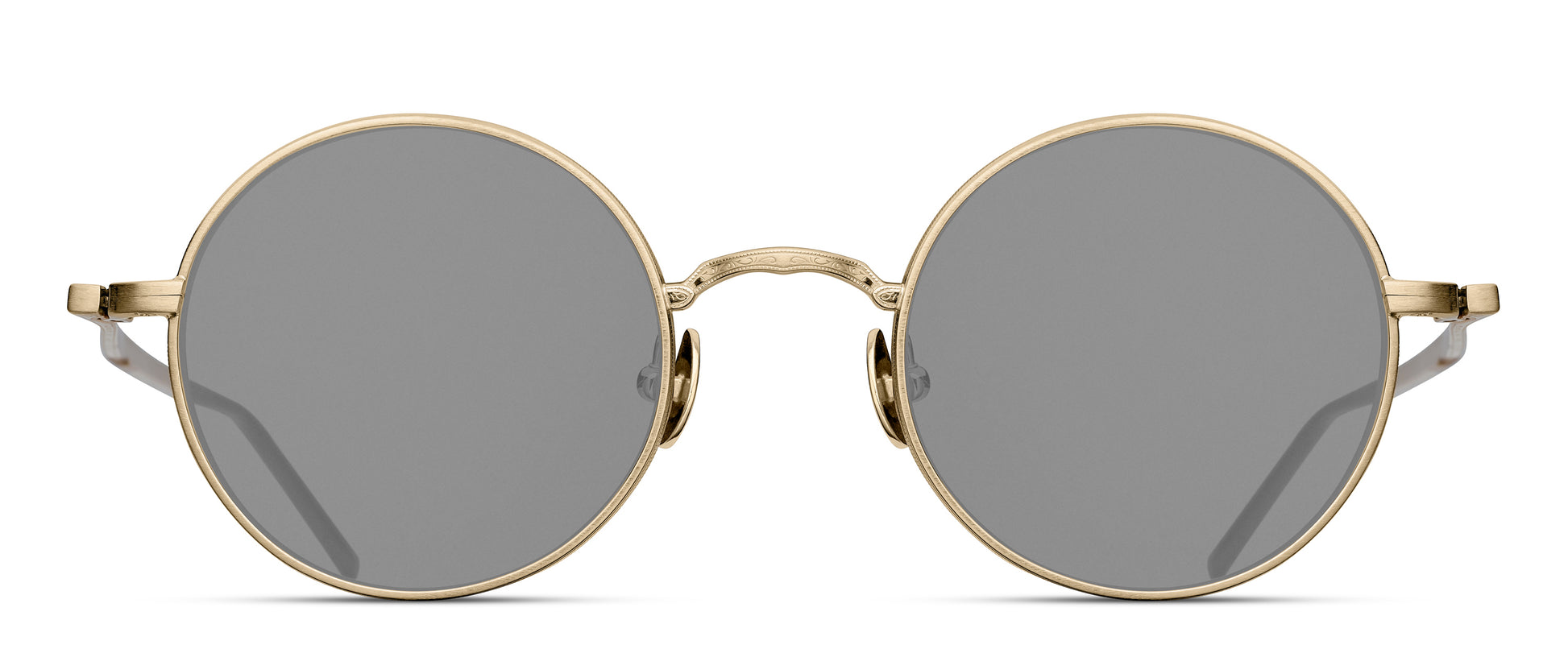 Il modello 3087 del brand giapponese di eyewear MATSUDA rappresenta la perfezione minimalista in fatto di occhiali da sole. La montatura pressata in titanio con una finitura spazzolata oro presenta delicate incisioni sulle protezioni laterali, sul ponte e sulle aste. Incredibilmente leggera, questa montatura è dotata di lenti colorate e di comodi naselli in titanio per una calzata sicura.