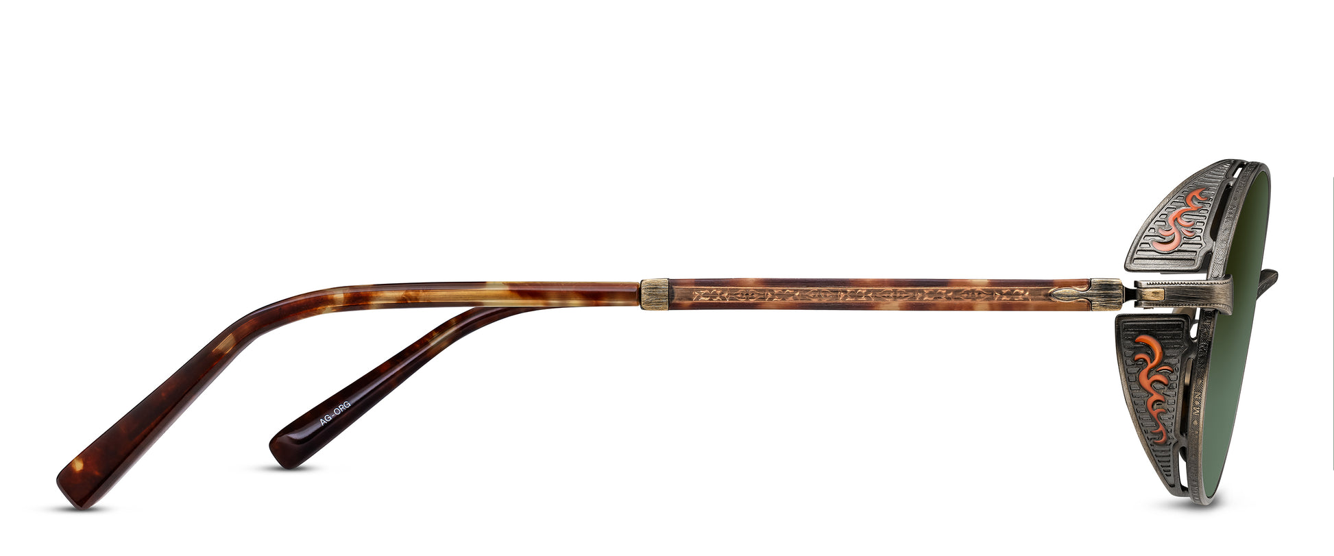 Il modello M3137 è un esempio di tecnica all'avanguardia, con protezioni laterali in titanio scanalato con elegante decoro "a vetro colorato" e aste che combinano magistralmente acetato giapponese e metallo prezioso, il tutto unito alla collaudata forma rotonda delle lenti.
